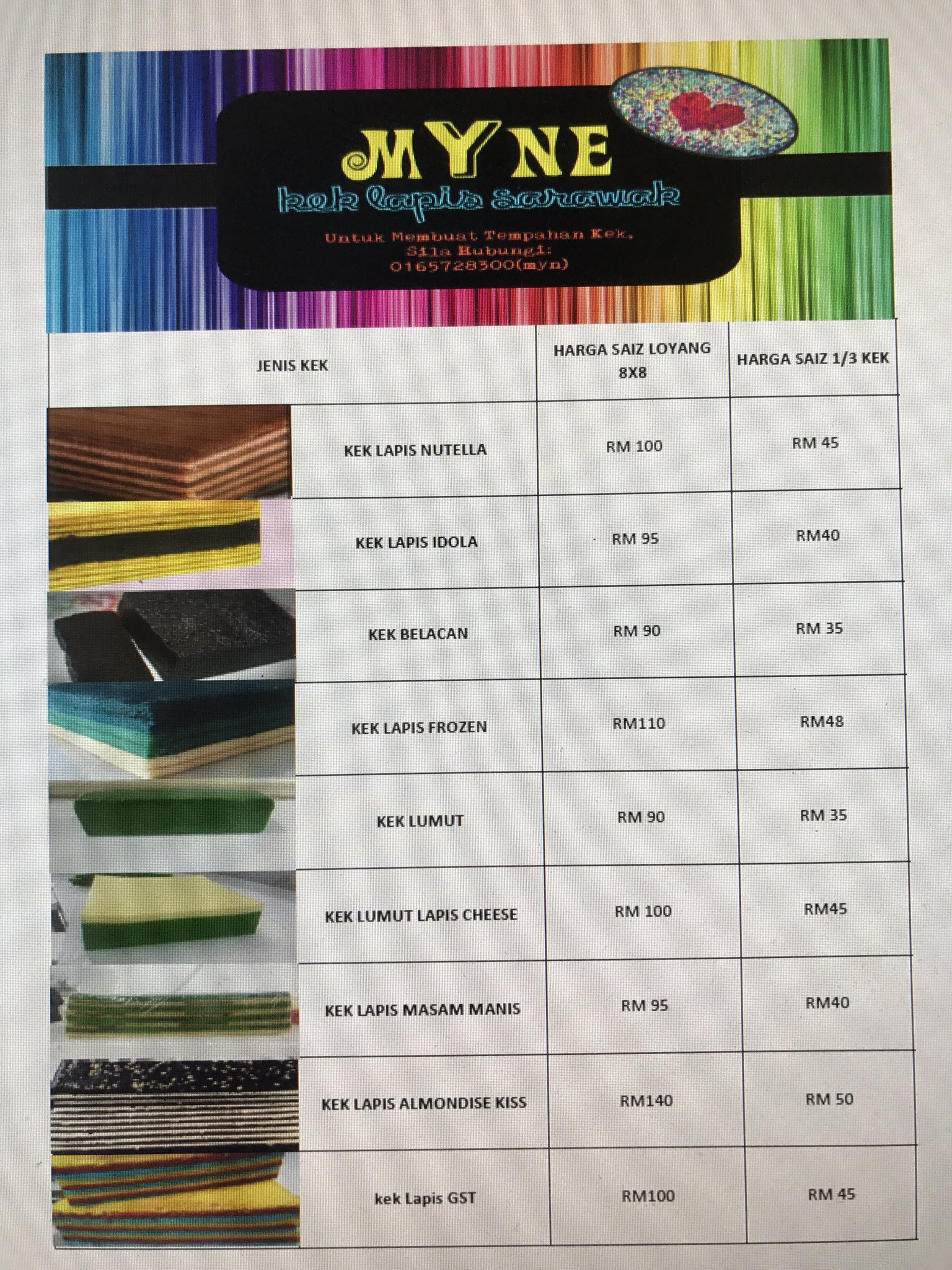 Produk Kek Lapis Sarawak Dan Harga Kek Lapis Sarawak
