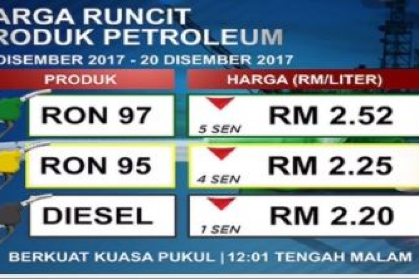 Harga Minyak Petrol Dan Diesel Terbaharu Dari 14 Disember Sehingga 20 Disember 2017