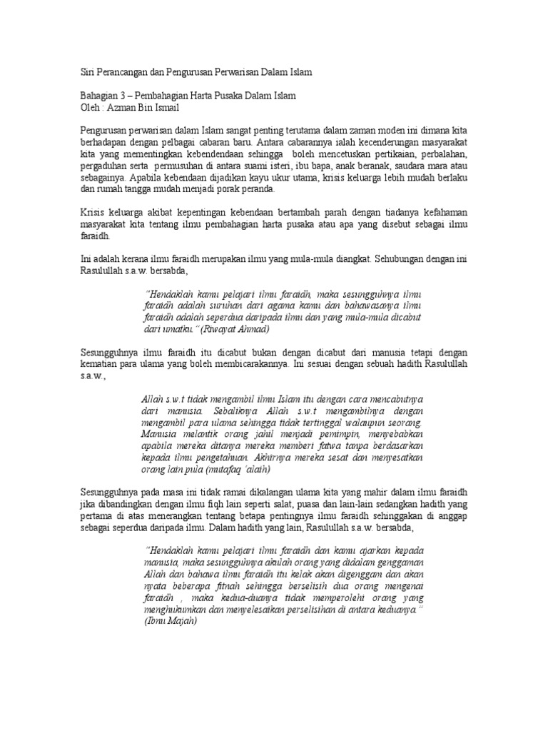 Pembagian Harta Pusaka Dalam Islam Ilmu Charisma Legacy Kota Bharu Facebook