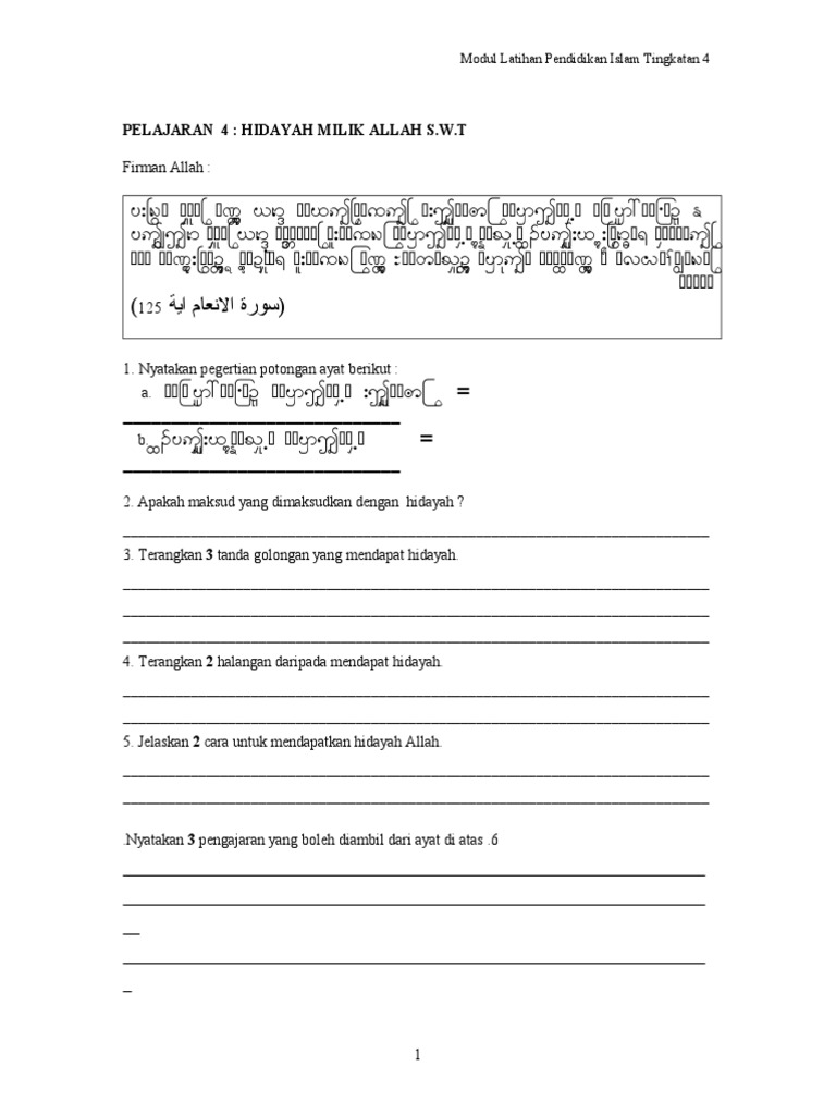 Pelajaran 4 Hidayah Milik Allah S W T Modul Latihan Pendidikan Islam Tingkatan 4