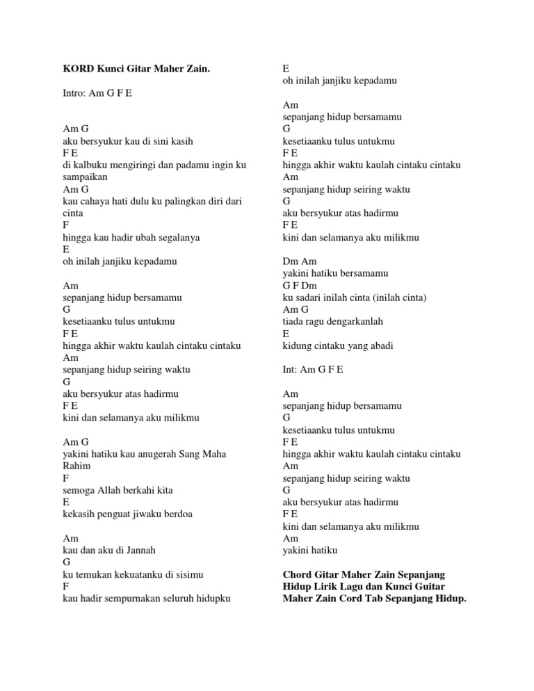 Kru Hingga Ke Jannah Chord Gitar Kord Melayu Malay Guitar Chords Archive