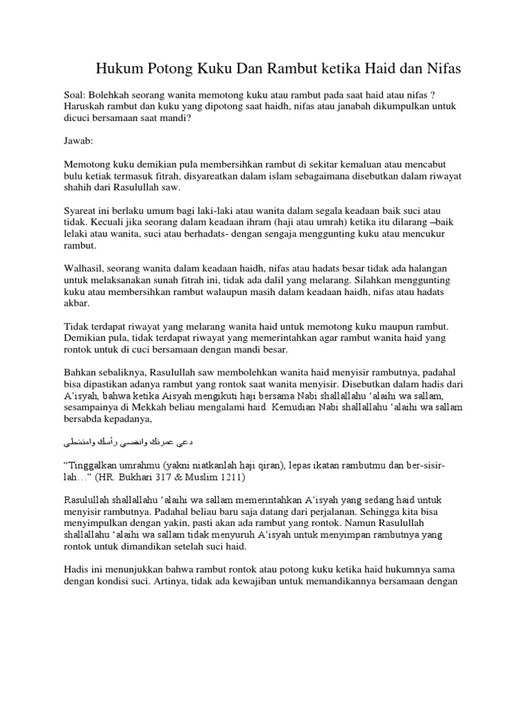 Hukum Potong Rambut Dan Kuku Bagi Wanita Haid Dan Nifas Muhammad Wasitho Abu Fawaz