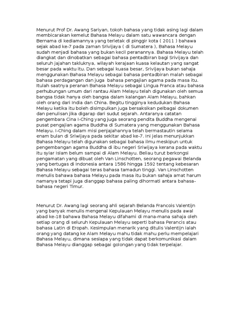 Kedudukan Bahasa Melayu Di Peringkat Antarabangsa Docx