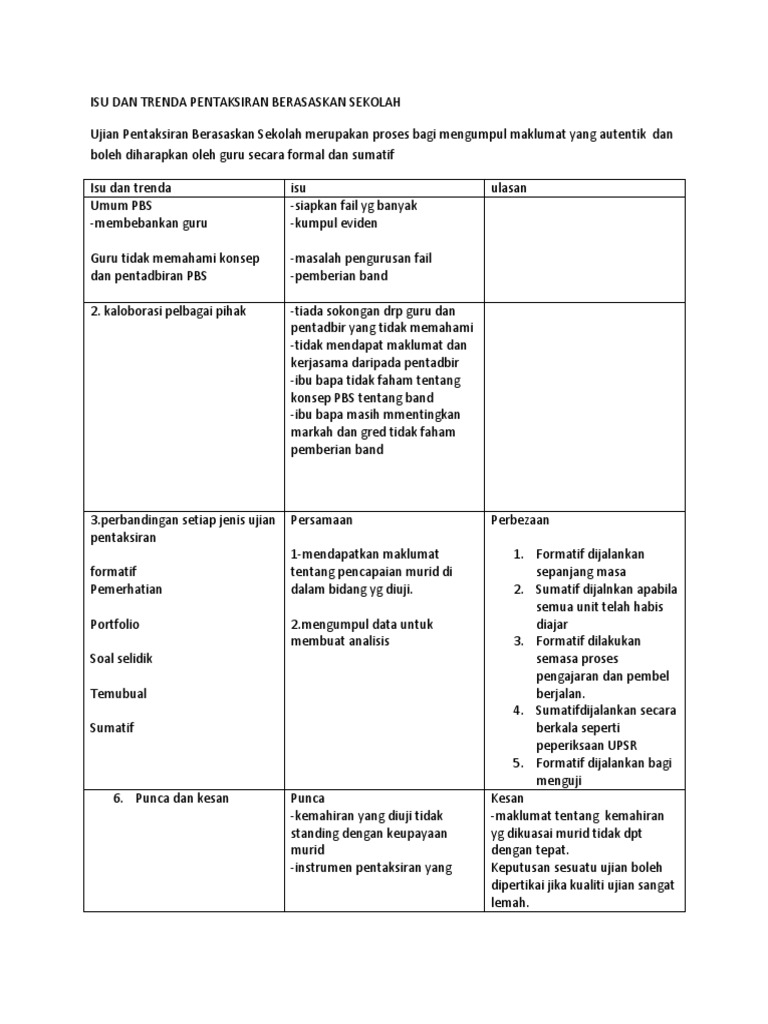 Isu Dan Trenda Pentaksiran Berasaskan Sekolah