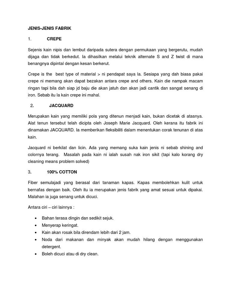 Jenis Fabrik Yang Terdapat Di Pasaran Mybaju Blog