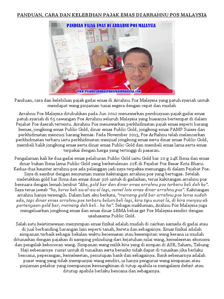 Panduan Cara Dan Kelebihan Pajak Emas Di Arrahnu Pos Malaysia Pdf Document