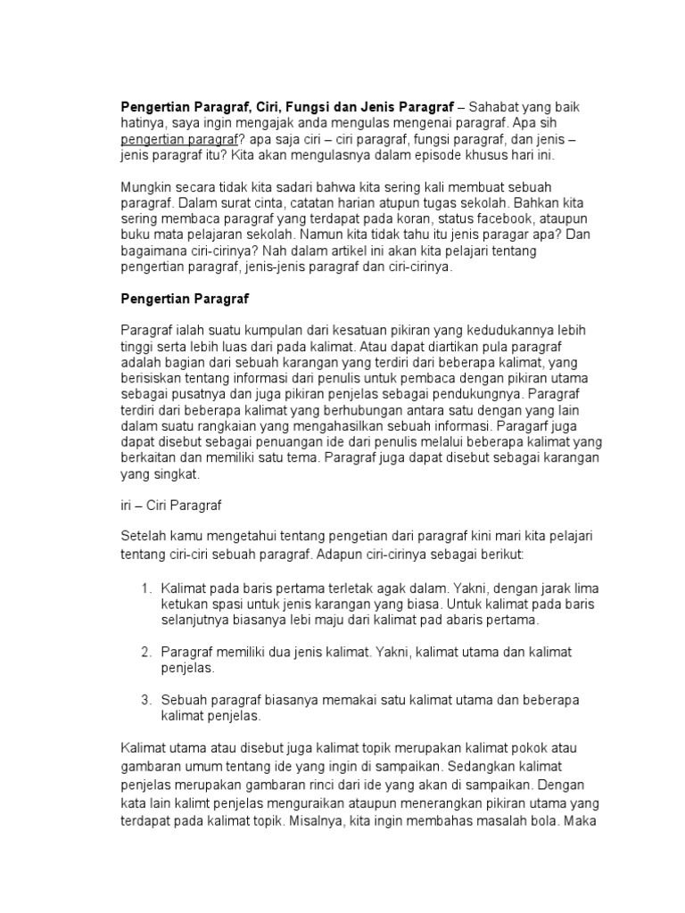 Pengertian Paragraf Ciri Fungsi Dan Jenis Paragraf Sahabat Yang Baik