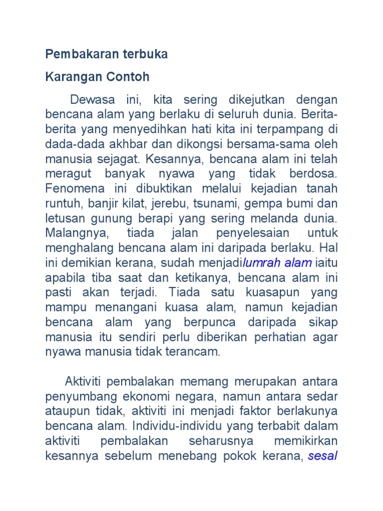 Karangan Kesan Pembakaran Terbuka