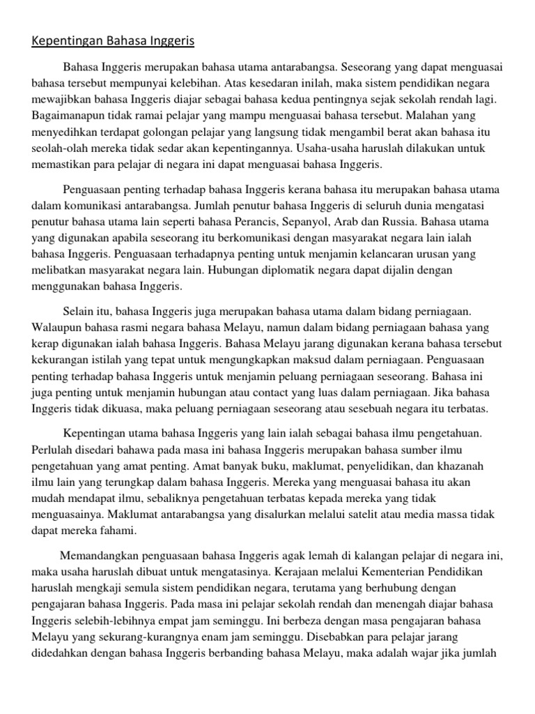 Contoh Karangan Kepentingan Menguasai Bahasa Asing Seperti Bahasa Inggeris