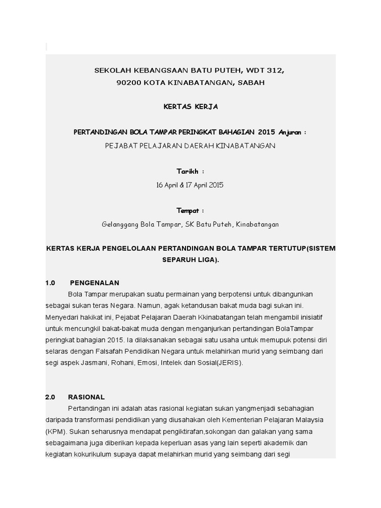 Doc Kertas Kerja Pengelolaan Pertandingan Bola Tampar Contoh Raja Dzirhazmee Academia Edu