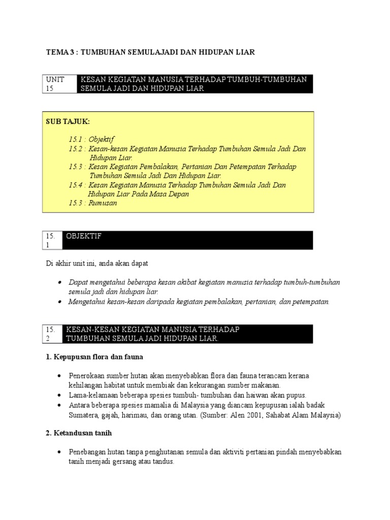 Kesan Kegiatan Manusia Terhadap Tumbuh Tumbuhan Semula Jadi Dan Hidupan Liar