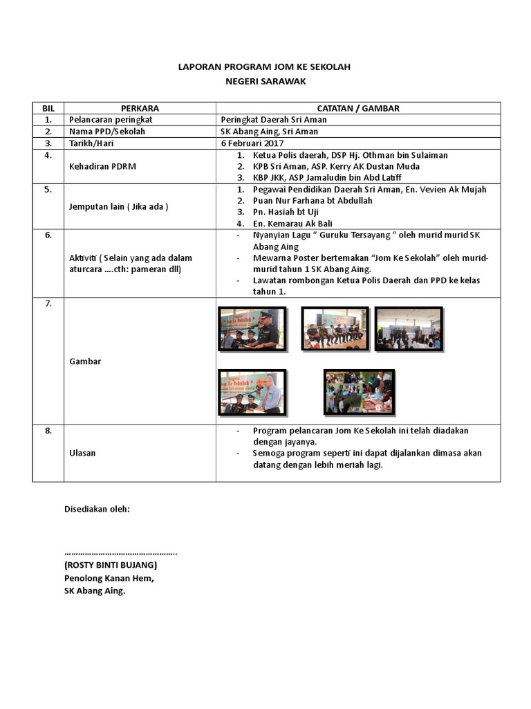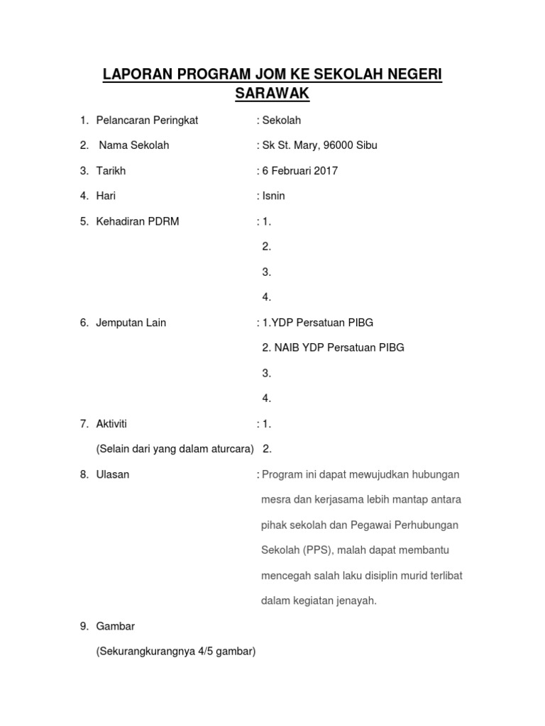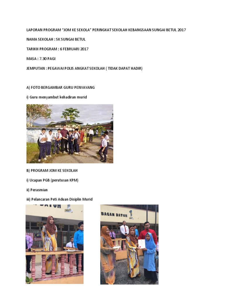 Laporan Program Jom Ke Sekolah Contoh
