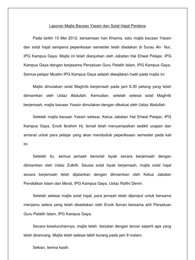 Laporan Majlis Restu Ilmu Baca Yaasin Solat Hajat Upsr 2018 Pages 1 6 Text Version Anyflip