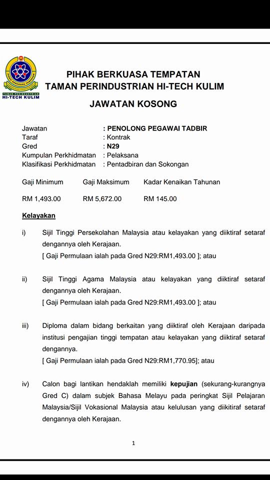 Jawatan Kosong Di Pihak Berkuasa Tempatan Taman Perindustrian Hi Tech Kulim Terbuka Pelbagai Jawatan Gred Jobcari Com Jawatan Kosong Terkini