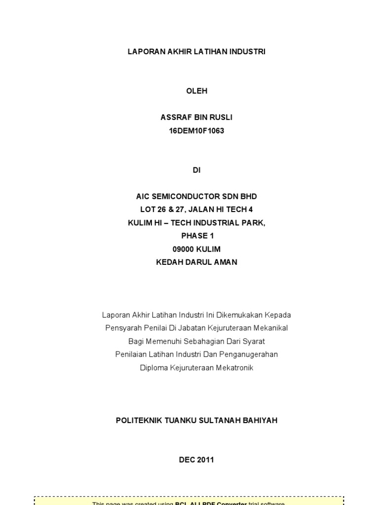 Latihan Industri Di Kulim Hi Tech