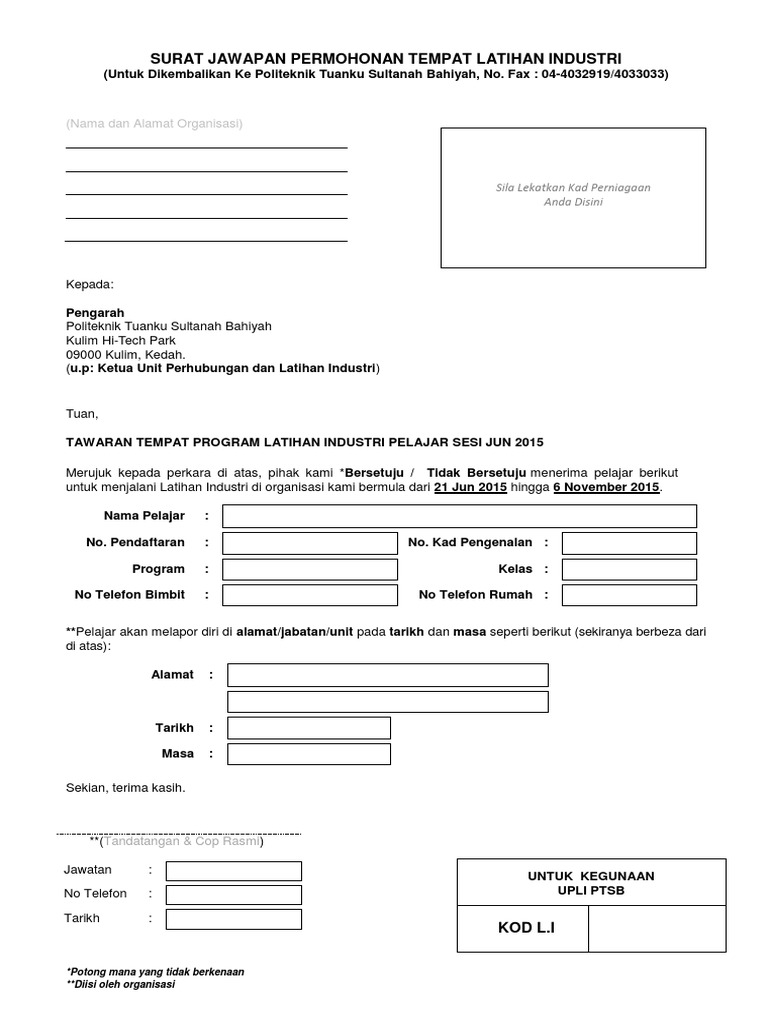 2 Surat Pendaftaran Pelajar Latihan Industri Sesi Dis 2010