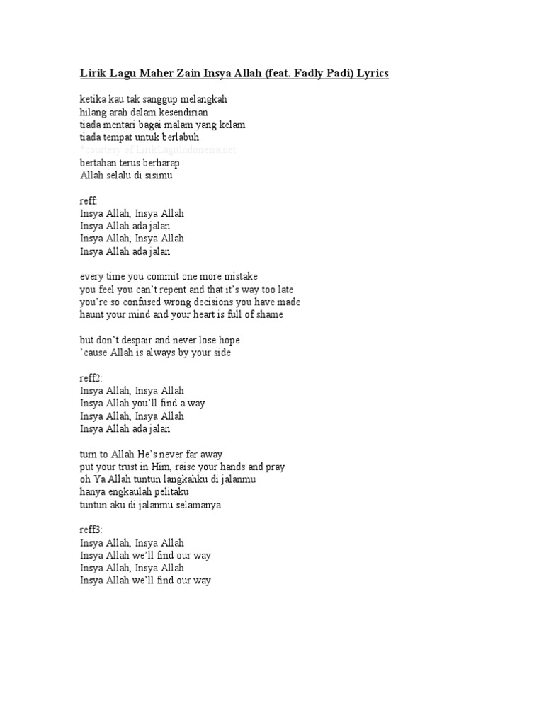 Lirik sepanjang hidup oleh maher zain. Lirik baraka allahu lakuma oleh maher zain. Lagu lawlaka yang dinyanyikan oleh maher zain tersebut bertepatan dengan perayaan bulan ramadan 1440 h. Lirik insya allah oleh maher zain.